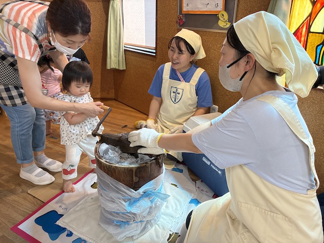 7月・8月とアイスクリーム作りをしました。 桶型のアイスクリームマシンを見て「こ...