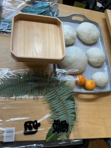 つきあがったもちは鏡餅に整えます。