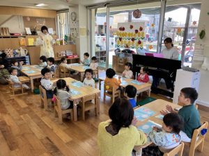 2歳児のお友達は4月から幼児クラスへ、年長しろ組は小学校へ。