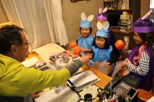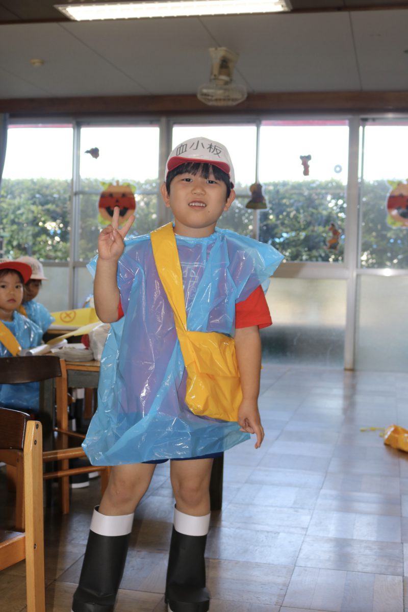 もらったお菓子を見せ合ったり、衣装を嬉しそうに着ていた子ども達。