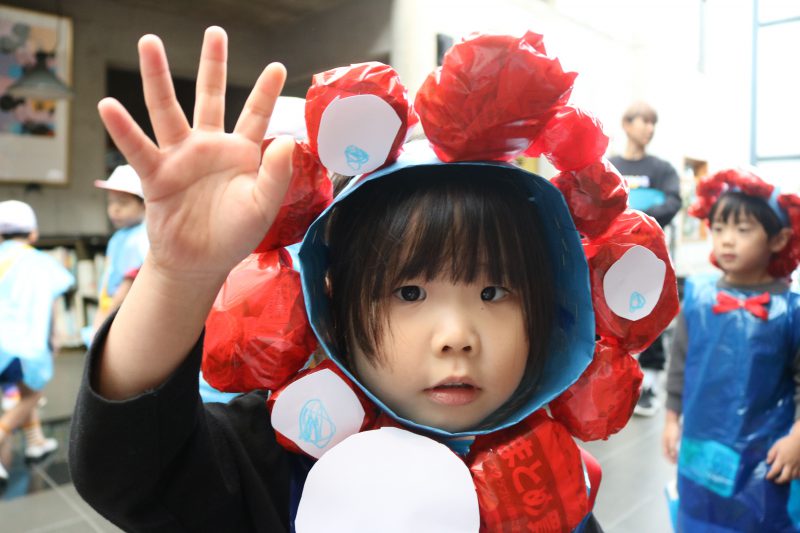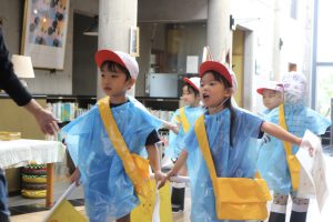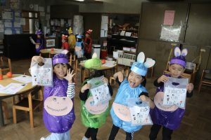 英語遊びの後は、子ども達は自分で作った衣装に着替えます。