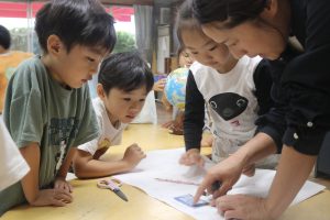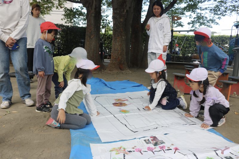 昨年、幼児クラスのみんなで玉川保育園の「園庭MAP」を作ったのですが、